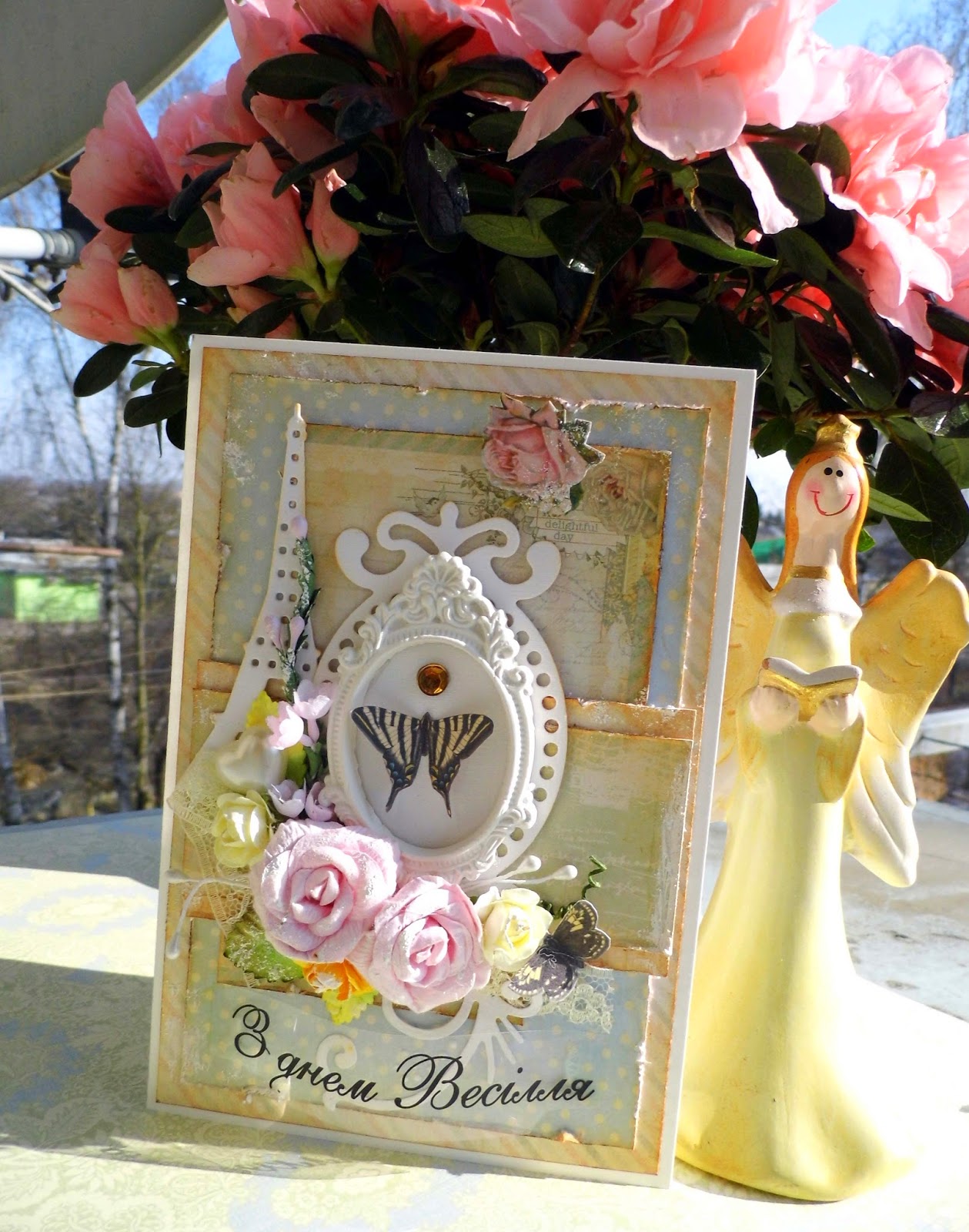 А тепер листівка 3 етапу. Обов"язковим є: жовтий колір + метелик. Я справилася )))